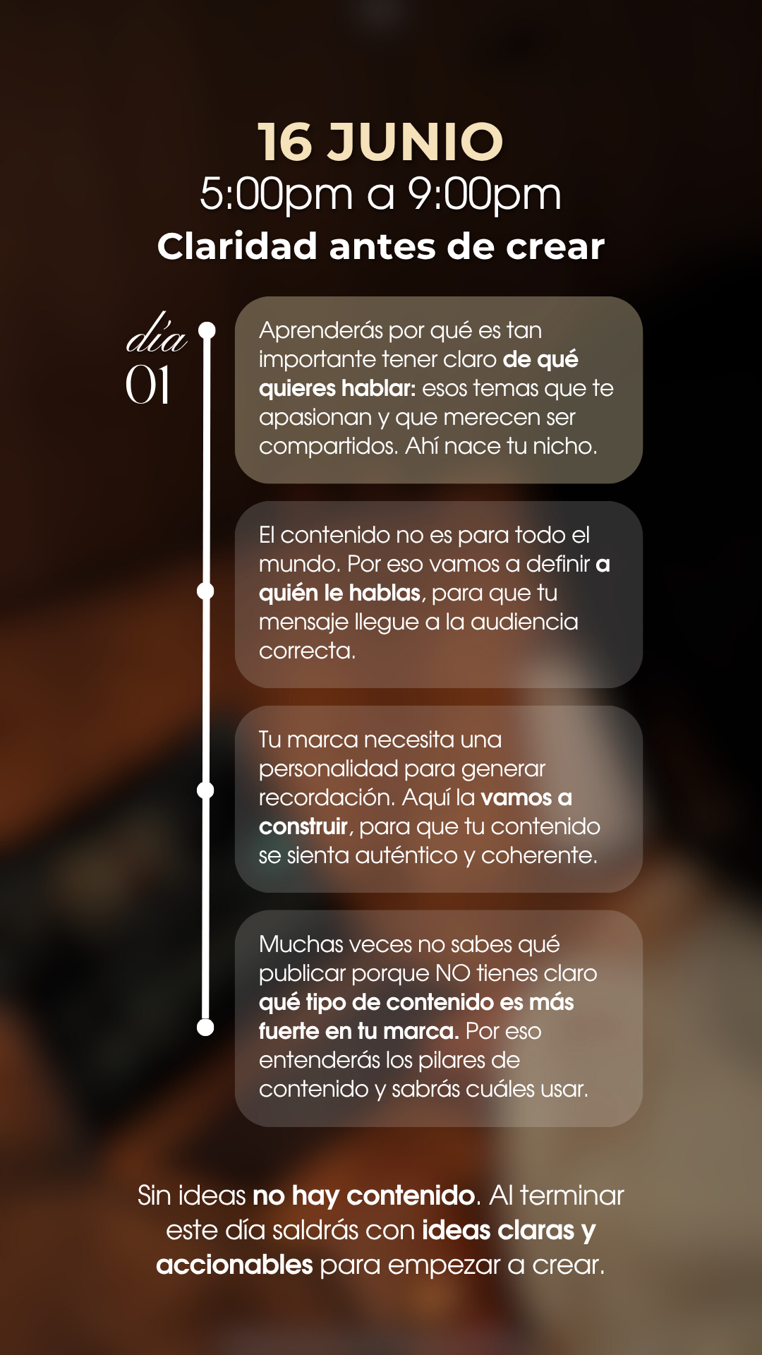 Es un espacio donde te voy a enseñar paso a paso cómo hacer que el contenido de tu marca realmente funcione